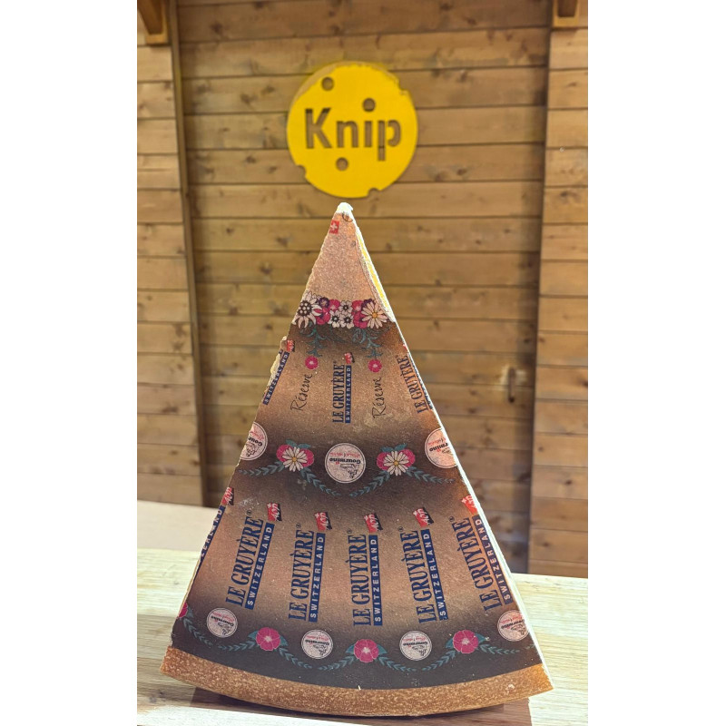 Legendárny švajčiarsky nepasterizovaný kravský syr s chrakteristickou plnou chuťou a jemne kryštálovou textúrou, vyzrievaný minimálne 10 až 15 mesiacov v kamenných pivniciach v Gruyères. Vďaka dlhému zreniu sa v ňom rozvíjajú komplexné tóny lieskovcov, karamelu a horských bylín.