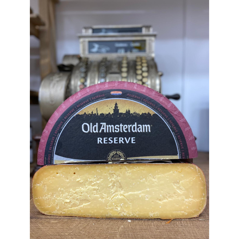 Old Amsterdam Reserve je prémiový zrejúci holandský syr s intenzívnou, plnou chuťou a jemne kryštalickou štruktúrou. Vďaka dlhému zreniu ponúka výrazné karamelové tóny s príjemne pikantným záverom. Ideálny na syrové misy, k červenému vínu alebo len tak – pre skutočných milovníkov vyzretých syrov.